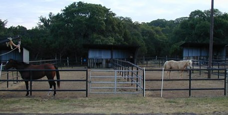 Daily turnout 7 days per week in shaded pastures with shelter, excellent coastal round bales, and board fences